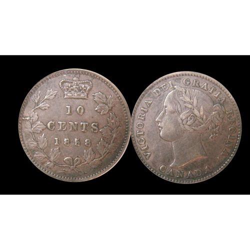 1858 10¢ 1st 8/5 PCGS VF35, Sharp example with strong strike. Very rare variety!