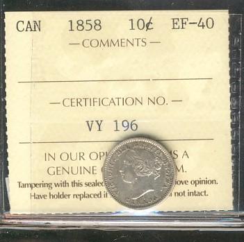 1858 10¢ ICCS EF40.