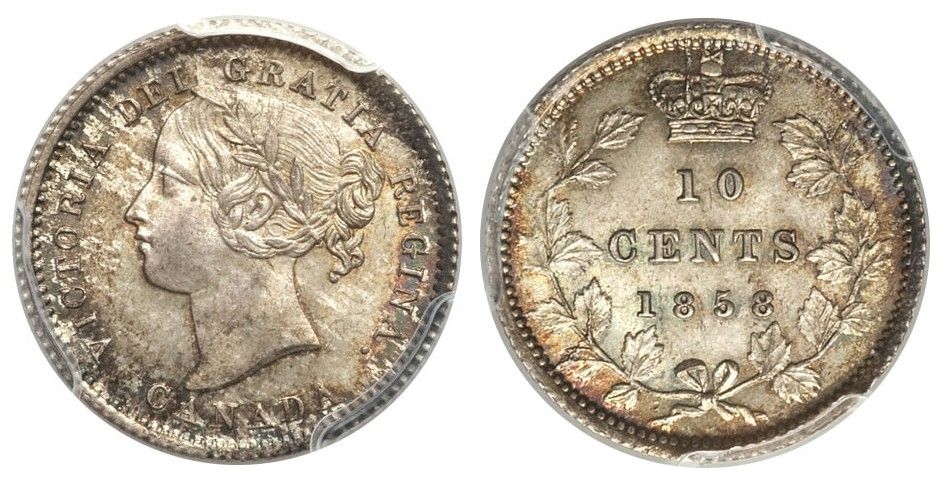 1858 10¢ ICCS MS65 Attractively toned over full underlying lustre. Superb Gem with a sharp strike and great surfaces. This coin presents an important opportunity for Registry Set collectors. Expect strong bidding.
