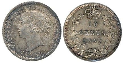 1858 10¢ ICCS MS65. Gem russet shades and underlying lustre.