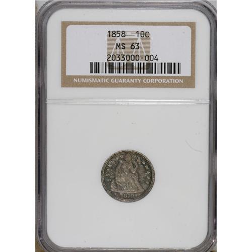 1858 10C MS63 NGC. NGC Census: (21/66). PCGS Popul