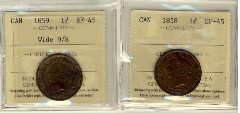 1858 & 1859 W9/8 ICCS EF45. Lot of 2 coins.