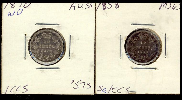 1858 & 1870 Wd 0 10¢ VF to EF. Lot of 2 Victorian issues.