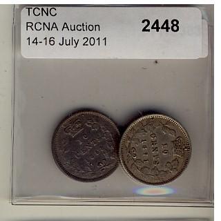 9. The cataloguer has taken every reasonable measure to ensure that all of the lots in this sale are as described and genuine. All raw coins and banknotes have been graded by the cataloguer or the auction house which represent our best professional opinion. To grade coins and banknotes, we use Canadian grading standards, 31 years of experience and good conscience. Grading is a subjective description in the opinion of the cataloguer or the auction house. Among experts there are often differences of opinion on the grading and the eye appeal of a coin. The strike and the state of preservation are often debated. TCNC acts as an agent between consignors and buyers. TCNC does not guarantee that any coin or banknote catalogued will meet the standards, or the grade, of any third party grading companies. No warranty, whether impressed or implied.