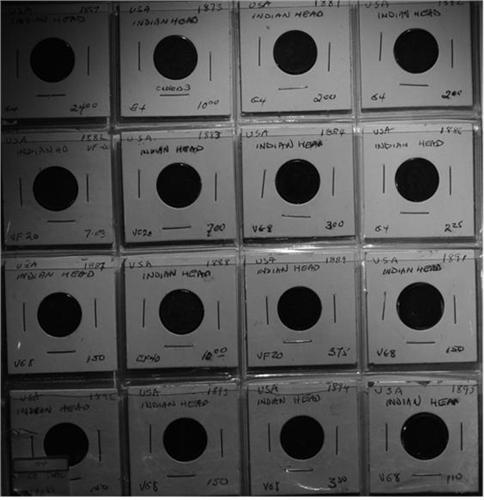 20 Indian Head cents, mostly VG with a couple VF/EF. Good mix of dates with a couple semi keys; 1858, 1863, 1864, 1867, 1873, 1881-84, 1886-89, 1891-95 and only 2 duplicate dates. No return.