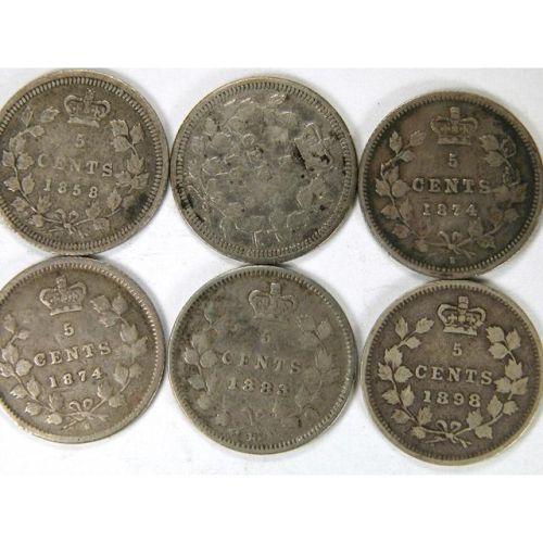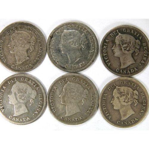 1858 Small Date, 1870 Wide Rims, 1874 Plain 4, 1874 Crosslet 4, 1883H and 1898. Six pale to lightly toned pieces, all VG+ or better