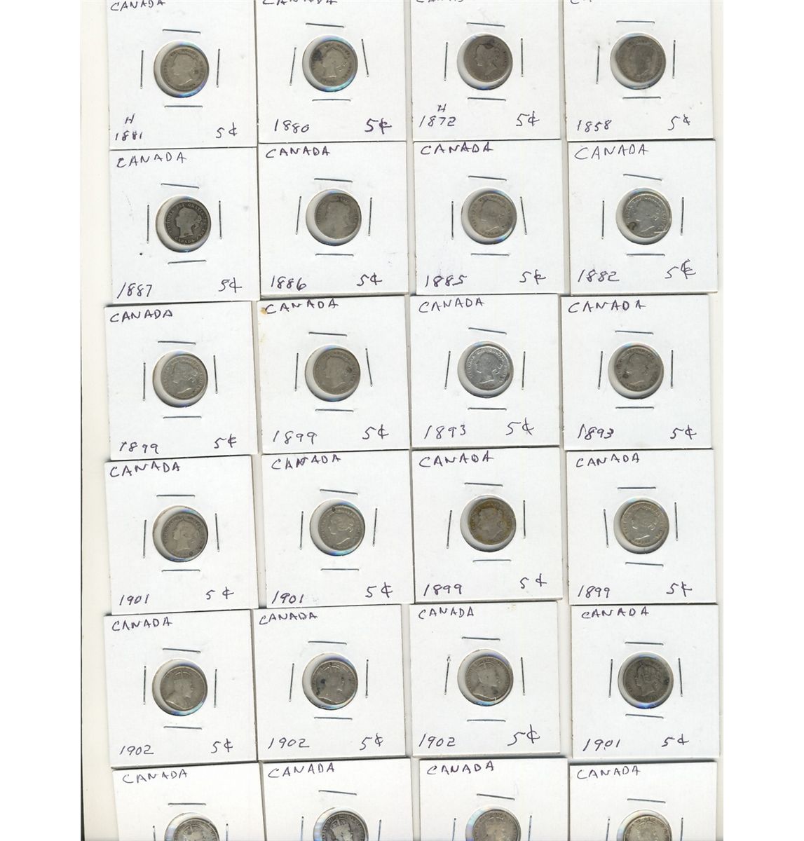 1858-1920 5¢. Lot of 50 pcs with some duplicates. Includes 17 Victorian, 16 Geo VII & 17 Geo V. Good to Fine.