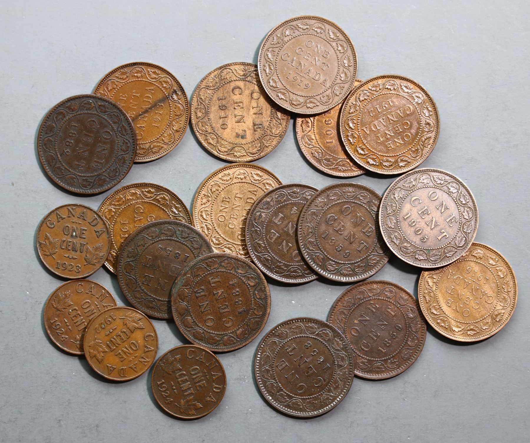 1858-1924 1¢ lot of 20 coins. Includes key dates. VG to AU. A nice lot. The 1858 grades EF.