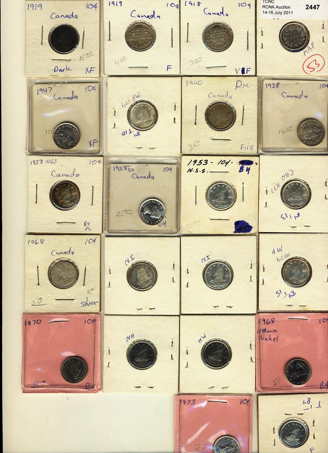 1858, - 1973 10¢, lot of 22 pieces. Grades vary from VF-20 to PL-65.