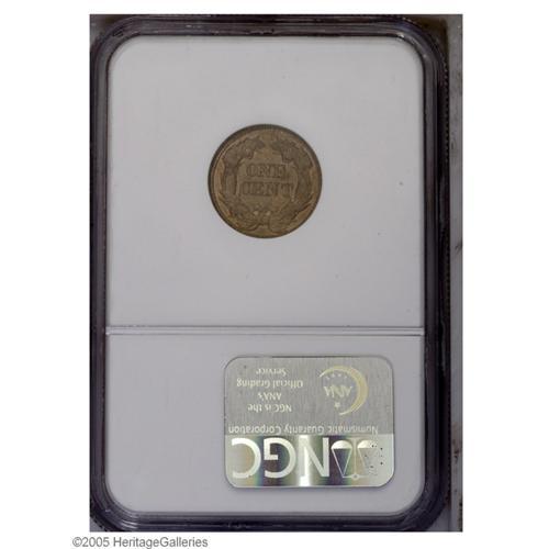 <B>1858<1C> Large Letters MS64 NGC.</B></I> High Leaves Reverse. This golden-brown type coin has an above average strike and good cartwheel luster. Essentially void of contact, a faint strike-thru is centered beneath the TE in STATES.