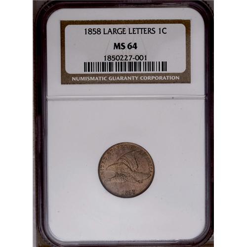1858 1C Large Letters MS64 NGC. Lustrous golden-tan pa 1858[1C] Large Letters MS64 NGC.