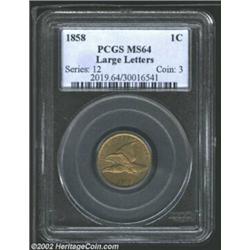 1858 1C Large Letters MS64 PCGS. An exquisitely preserved near-Gem that has a blush of rich tobacco-