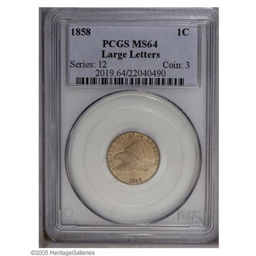 1858 1C Large Letters MS64 PCGS. High Leaves, Closed E 1858[1C] Large Letters MS64 PCGS.