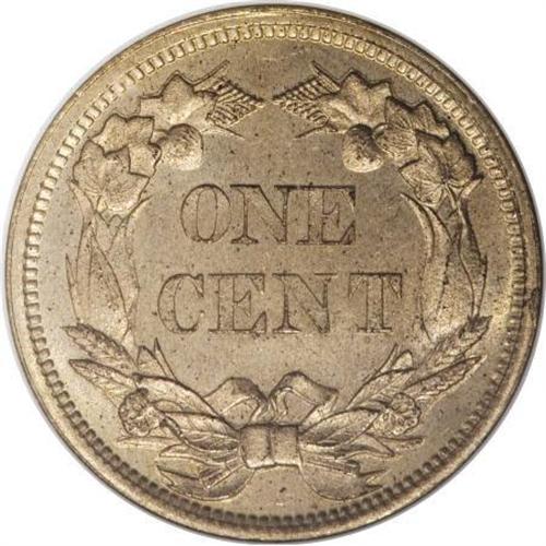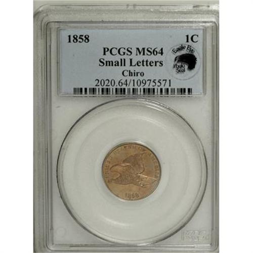 <B>1858 1C Small Letters MS65 NGC.</B></I> Snow-9. Low Leaves Reverse. A crisply struck and highly lustrous Gem with lovely honey-gold color. Virtually void of contact, although a few minute carbon flecks are present. Light die doubling is seen on the E in ONE, from the use of both Open E and Closed E hubs to create the reverse die. A small cud is noted at 3 o'clock on the reverse. In an early, pre-hologram NGC holder.<BR><I>From The Santa Fe Collection.</B></I><BR><BR><b>Shipping:</b> Coins & Currency (<a target="_blank" href="http://www.heritageauctions.com/common/shipping.php">view shipping information</a>\)
