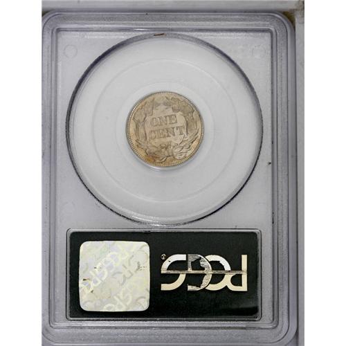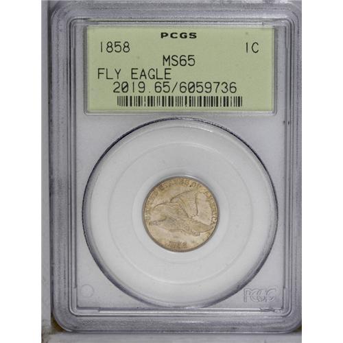 <B>1858<1C> Large Letters MS65 PCGS.</B></I> High Leaves, Closed E. A shimmering honey-tan and lilac Gem with tinges of brighter orange-rose color about the date and left side of the wreath. While not fully defined, the strike is well executed in all areas. <BR><BR><B>Important notice:</B> Heritage usually auctions material at the rate of 200-250 lots per hour. On some occasions eBay Live bid software or the Internet may not be able to keep up with the pace of the auction. We recommend placing a realistic absentee bid now as insurance to avoid disappointment. Occasionally the auctioneer may eliminate or reject an eBay Live bid, and the auctioneer may also reopen a lot after the close of the eBay live bidding (usually because we missed an audience bid), and may reject your bid even if it shows you as the winning bidder. By bidding via eBay Live, you agree that Heritage may award the lot to another bidder at its sole discretion under the circumstances described above or any other reasonable circumstances. Since eBay bids are not shown to us until we open the lot on the floor, we treat those bids just like floor bids. In most cases the floor responds before the eBay bid is presented to us, due to Internet lag time, so for consistency we have made it a policy that floor bids are always considered first over tie eBay live bids. Also please note that all Heritage lots purchased through eBay Live carry a 20% Buyer's Premium. Please make sure you read the Terms and Conditions before you bid. This lot is being auctioned in conjunction with a live floor auction by Heritage Galleries & Auctioneers. All final auction and invoice information will be supplied by Heritage Galleries & Auctioneers, and all other information should be considered preliminary. Lot:361 <BR><BR><B>Winning Notification and Billing:</B> After the FINAL session in this auction is complete, Heritage will send e-mail and snail mail invoices. This process normally takes several days. All final auction and invoice information will be supplied by Heritage Galleries & Auctioneers, and all other information should be considered preliminary. <BR><BR>This auction will be conducted on a live auction floor and over the Internet through eBay Live. If you choose to place an absentee bid, please take a moment to <font color='#0000ff'><u><a href='http://pages.ebay.com/liveauctions/help/before/laabsentee.html'>learn how eBay Live absentee bidding works</a></u></font><font color='#000000'>