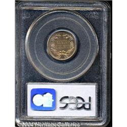 <B>1858<1C> Large Letters MS65 PCGS.</B></I> "Wow, what a coin!" was the consensus opinion of our cataloging staff when this one was individually viewed. A fully original, sharply struck Gem, each side is enhanced with soft pastel-rose, sky-blue, and lime-gold patina. The underlying luster is bright and coruscant with no detracting abrasions or carbon spots so often seen on these coins. As a future identifier, a tiny planchet flake is visible on close examination under the second S of STATES in the obverse field. Worthy of a close look and a premium bid. <BR><BR><B>Important notice:</B> Heritage usually auctions material at the rate of 200-250 lots per hour. On some occasions eBay Live bid software or the Internet may not be able to keep up with the pace of the auction. We recommend placing a realistic absentee bid now as insurance to avoid disappointment. Occasionally the auctioneer may eliminate or reject an eBay Live bid, and the auctioneer may also reopen a lot after the close of the eBay live bidding (usually because we missed an audience bid), and may reject your bid even if it shows you as the winning bidder. By bidding via eBay Live, you agree that Heritage may award the lot to another bidder at its sole discretion under the circumstances described above or any other reasonable circumstances. Since eBay bids are not shown to us until we open the lot on the floor, we treat those bids just like floor bids. In most cases the floor responds before the eBay bid is presented to us, due to Internet lag time, so for consistency we have made it a policy that floor bids are always considered first over tie eBay live bids. Also please note that all Heritage lots purchased through eBay Live carry a 20% Buyer's Premium. Please make sure you read the Terms and Conditions before you bid.