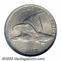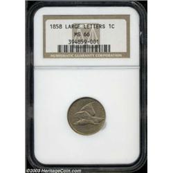 <table><tr><td><TABLE cellSpacing=0 cellPadding=0 width="100%" bgColor=#000000 border=0><TBODY> <TR><TD width="100%"><TABLE cellSpacing=1 cellPadding=3 width="100%" border=0><TBODY><TR><TD width="100%" bgColor=#79735c><FONT face=arial color=#ffffff size=3><B>Description</B> </FONT></TD></TR><TR><TD width="100%" bgColor=#ffffff><FONT face=arial size=2><B>1858 1C Large Letters MS66 NGC.</B></I> A lustrous Gem with bright honey-gold color and virtually pristine surfaces. Meticulously struck, with unusually bold definition the eagle's head, wingtip, and tail feathers. The wreath bow is also uncharacteristically sharp. A small planchet flaw (as made) resides below the left pendant of the T in CENT. Population: 25 in 66, 1 finer (10/03). </FONT></TD></TR></TBODY></TABLE></TD></TR></TBODY></TABLE><BR><A name=PricesRealized></A><TABLE cellSpacing=0 cellPadding=0 width="100%" bgColor=#000000 border=0><TBODY><TR><TD width="100%"><TABLE cellSpacing=1 cellPadding=3 width="100%" border=0><TBODY><TR><TD width="100%" bgColor=#79735c><A name=PR><FONT face=arial color=#ffffff size=3><B>Previous Prices from Heritage Auctions</B> </FONT></A></TD></TR><TR><TD bgColor=#f6f6ed><TABLE cellSpacing=0 cellPadding=0 width="100%" border=1><TBODY><TR><TD align=middle width="33%"><B>Date</B></TD><TD align=middle width="33%"><B>Service</B></TD><TD align=middle width="33%"><B>Price</B></TD></TR><TR bgColor=whitesmoke><TD width="33%"><B>05/05/2003</B></TD><TD width="33%">NGC</TD><TD width="33%">$3,450.00</TD></TR><TR bgColor=whitesmoke><TD width="33%"><B>01/11/2003</B></TD><TD width="33%">NGC</TD><TD width="33%">$4,140.00</TD></TR><TR bgColor=whitesmoke><TD width="33%"><B>06/08/2002</B></TD><TD width="33%">PCGS</TD><TD width="33%">$6,900.00</TD></TR><TR bgColor=whitesmoke><TD width="33%"><B>05/29/1996</B></TD><TD width="33%">PCGS</TD><TD width="33%">$4,015.00</TD></TR><TR bgColor=whitesmoke><TD width="33%"><B>10/07/1995</B></TD><TD width="33%">PCGS</TD><TD width="33%">$4,125.00</TD></TR><TR bgColor=whitesmoke><TD width="33%"><B>01/09/2002</B></TD><TD width="33%">PCGS</TD><TD width="33%">$6,038.00</TD></TR><TR bgColor=whitesmoke><TD width="33%"><B>06/01/2001</B></TD><TD width="33%">PCGS</TD><TD width="33%">$9,775.00</TD></TR><TR bgColor=whitesmoke><TD width="33%"><B>01/01/1999</B></TD><TD width="33%">NGC</TD><TD width="33%">$4,180.00</TD></TR></TBODY></TABLE></TD></TR><TR><TD bgColor=#ffffff><FONT face=arial size=1 ?>PLEASE NOTE: All prices realized reflect the final hammer price PLUS the buyer's premium in auctions that charge a buyer's premium. Each item has a notation at the top of the listing indicating whether that lot included a buyer's premium. Example: A item that sells with a final hammer price of $100 and a 20% buyer's premium will display with a price realized of $120. All information listed is intended to be as accurate as possible, but errors are possible. Please use this guide carefully and inform us of any inaccuracies. </FONT></TD></TR></TBODY></TABLE></TD></TR></TBODY></TABLE><BR><TABLE cellSpacing=0 cellPadding=0 width="100%" bgColor=#000000 border=0><TBODY><TR><TD width="100%"><TABLE cellSpacing=1 cellPadding=3 width="100%" border=0><TBODY><TR><TD width="100%" bgColor=#79735c colSpan=6><FONT face=arial color=#ffffff size=3><B>Price Guide*</B> </FONT></TD></TR><TR bgColor=#f6f6ed><TD align=middle><B>Grade</B> </TD><TD align=middle><B>Coin World<BR>(Trends)</B> </TD><TD align=middle><B>Numismedia<BR>Retail</B> </TD><TD align=middle><B>Numismedia<BR>Wholesale</B> </TD><TD align=middle><B>Coin<BR>Universe</B> </TD><TD align=middle><B>Heritage<BR>Value Index</B> </TD></TR><TR bgColor=#ffffff><TD align=middle>65</TD><TD align=right>$4,000.00</TD><TD align=right>---</TD><TD align=right>$3,050.00</TD><TD align=right>$5,000.00</TD><TD align=right>$2,941.25</TD></TR><TR style="FONT-WEIGHT: bold" bgColor=#cccfdd><TD align=middle>66</TD><TD align=right>$6,000.00</TD><TD align=right>---</TD><TD align=right>$6,440.00</TD><TD align=right>$13,500.00</TD><TD align=right>$5,891.67</TD></TR><TR bgColor=#ffffff><TD align=middle>67</TD><TD align=right>---</TD><TD align=right>---</TD><TD align=right>---</TD><TD align=right>---</TD><TD align=right>---</TD></TR><TR bgColor=#ffffff><TD colSpan=6><FONT size=1>*All information listed is intended to be as accurate as possible, but errors are possible. No item may be returned or refused based on this information which is provided as a service to our customers. You should contact each pricing source directly to determine the accuracy of this information. </FONT></TD></TR></TBODY></TABLE></TD></TR></TBODY></TABLE><BR><TABLE cellSpacing=0 cellPadding=0 width="100%" bgColor=#000000 border=0><TBODY><TR><TD width="100%"><TABLE cellSpacing=1 cellPadding=3 width="100%" border=0><TBODY><TR><TD width="100%" bgColor=#79735c><FONT face=arial color=#ffffff size=3><B>Population Guide</B> </FONT></TD></TR><TR bgColor=#ffffff><TD align=middle><!-- Begin Output of Population Grid--><TABLE cellSpacing=0 cellPadding=0 width="100%" border=0><TBODY><TR><TD vAlign=center><TABLE cellSpacing=0 width="100%" border=1 cellsadding="3"><TBODY><TR><TD vAlign=center><TABLE cellSpacing=0 cellPadding=3 width="100%" border=1><TBODY><TR><TD vAlign=center align=middle bgColor=#f0f1e8 colSpan=2 <CENTER><FONT face=Arial size=2><B>PCGS Pop </B></FONT><CENTER></CENTER></TD><TD vAlign=center align=middle bgColor=#f0f1e8 colSpan=2><CENTER><FONT face=Arial size=2><B>NGC Pop</B></CENTER></FONT></TD></TR><TR><TD vAlign=center><FONT face=Arial size=2>(66)</FONT> </TD><TD vAlign=center align=right><FONT face=Arial size=2>25</FONT> </TD><TD vAlign=center><FONT face=Arial size=2>(66)</FONT> </TD><TD vAlign=center align=right><FONT face=Arial size=2>19</FONT> </TD></TR><TR><TD vAlign=center><FONT face=Arial size=2>(>66)</FONT> </TD><TD vAlign=center align=right><FONT face=Arial size=2>1</FONT> </TD><TD vAlign=center><FONT face=Arial size=2>(>66)</FONT> </TD><TD vAlign=center align=right><FONT face=Arial size=2>1</FONT> </TD></TR>
