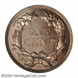 <TR><TD width="100%"><TABLE cellSpacing=1 cellPadding=3 width="100%" border=0><TBODY><TR><TD width="100%" bgColor=#79735c><FONT face=arial color=#ffffff size=3><B>Description</B> </FONT></TD></TR><TR><TD width="100%" bgColor=#ffffff><FONT face=arial size=2><B>1858 1C Large Letters PR67 Cameo NGC.</B></I> This is a very interesting coin from a numismatic study standpoint. Not all the diagnostics are clear as listed in Snow's reference, yet there is absolutely no doubt about the coin's status as a proof. It appears that the dies may have been polished between the time most of the Large Letters proofs were struck and when this piece was produced, thus extra die polishing may have effaced several of the diagnostics. What is also of interest are the obverse fields. They have a "dry creek bed" appearance, which is more suggestive of the "orange-peel" surfaces seen on proofs from the 1880s, or the micro-cracking seen on proofs struck from chromium plated dies minted after 1928. In either case, the fields show illimitable depth of mirrored reflectivity. The devices are noticeably frosted (reinforcing the theory that this was struck from a fresh set of dies). The surfaces have retained the uncleaned, light golden-rose color with a pale accent of lilac on the reverse. A few tiny flecks of carbon are seen on the obverse, while the only mentionable flaw on the reverse is a strike-through of some sort below the left (facing) ribbon bow. An exquisite proof Flying Eagle cent.<BR><I>From the V. A. Everest Collection.</B></I> </FONT></TD></TR></TBODY></TABLE></TD></TR></TBODY></TABLE><BR><A name=PricesRealized></A><TABLE cellSpacing=0 cellPadding=0 width="100%" bgColor=#000000 border=0><TBODY><TR><TD width="100%"><TABLE cellSpacing=1 cellPadding=3 width="100%" border=0><TBODY><TR><TD width="100%" bgColor=#79735c><A name=PR><FONT face=arial color=#ffffff size=3><B>Previous Prices from Heritage Auctions</B> </FONT></A></TD></TR><TR><TD bgColor=#f6f6ed>No Prior Data Recorded </TD></TR><TR><TD bgColor=#ffffff><FONT face=arial size=1 ?>PLEASE NOTE: All prices realized reflect the final hammer price PLUS the buyer's premium in auctions that charge a buyer's premium. Each item has a notation at the top of the listing indicating whether that lot included a buyer's premium. Example: A item that sells with a final hammer price of $100 and a 20% buyer's premium will display with a price realized of $120. All information listed is intended to be as accurate as possible, but errors are possible. Please use this guide carefully and inform us of any inaccuracies. </FONT></TD></TR></TBODY></TABLE></TD></TR></TBODY></TABLE><BR><TABLE cellSpacing=0 cellPadding=0 width="100%" bgColor=#000000 border=0><TBODY><TR><TD width="100%"><TABLE cellSpacing=1 cellPadding=3 width="100%" border=0><TBODY><TR><TD width="100%" bgColor=#79735c colSpan=6><FONT face=arial color=#ffffff size=3><B>Price Guide*</B> </FONT></TD></TR><TR bgColor=#f6f6ed><TD align=middle><B>Grade</B> </TD><TD align=middle><B>Coin World<BR>(Trends)</B> </TD><TD align=middle><B>Numismedia<BR>Retail</B> </TD><TD align=middle><B>Numismedia<BR>Wholesale</B> </TD><TD align=middle><B>Coin<BR>Universe</B> </TD><TD align=middle><B>Heritage<BR>Value Index</B> </TD></TR><TR bgColor=#ffffff><TD align=middle>66</TD><TD align=right>---</TD><TD align=right>---</TD><TD align=right>---</TD><TD align=right>---</TD><TD align=right>---</TD></TR><TR style="FONT-WEIGHT: bold" bgColor=#cccfdd><TD align=middle>67</TD><TD align=right>---</TD><TD align=right>---</TD><TD align=right>---</TD><TD align=right>---</TD><TD align=right>---</TD></TR><TR bgColor=#ffffff><TD align=middle>68</TD><TD align=right>---</TD><TD align=right>---</TD><TD align=right>---</TD><TD align=right>---</TD><TD align=right>---</TD></TR><TR bgColor=#ffffff><TD colSpan=6><FONT size=1>*All information listed is intended to be as accurate as possible, but errors are possible. No item may be returned or refused based on this information which is provided as a service to our customers. You should contact each pricing source directly to determine the accuracy of this information. </FONT></TD></TR></TBODY></TABLE></TD></TR></TBODY></TABLE><BR><TABLE cellSpacing=0 cellPadding=0 width="100%" bgColor=#000000 border=0><TBODY><TR><TD width="100%"><TABLE cellSpacing=1 cellPadding=3 width="100%" border=0><TBODY><TR><TD width="100%" bgColor=#79735c><FONT face=arial color=#ffffff size=3><B>Population Guide</B> </FONT></TD></TR><TR bgColor=#ffffff><TD align=middle></TD></TR></TBODY></TABLE></TD></TR></TBODY></TABLE><BR><TABLE cellSpacing=0 cellPadding=0 width="100%" bgColor=#000000 border=0><TBODY><TR> Important notice: We expect to be auctioning lots at the rate of 200-250 per hour. On occasion eBay live bid software cannot keep up with the pace of the auctions where 4-5 lots per minute can hammer down, so we recommend that you place a realistic absentee bid now as insurance to avoid disappointment. Also please note that all Heritage/CAA lots purchased through eBay Live carry a 20% Buyer's Premium. Please make sure you read the Terms and Conditions.