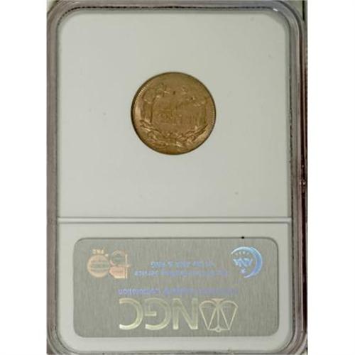 <B>1858 1C Small Letters MS64 NGC.</B></I> High Leaves, Closed E in ONE. A dusky tawny-gold near-Gem with vibrant cartwheel luster and an impressive strike on the central devices. Only a couple of tiny carbon flecks on each side determine the grade.<BR><I>From The Madison Collection.</B></I><BR><BR><b>Shipping:</b> Coins & Currency (<a target="_blank" href="http://www.heritageauctions.com/common/shipping.php">view shipping information</a>)