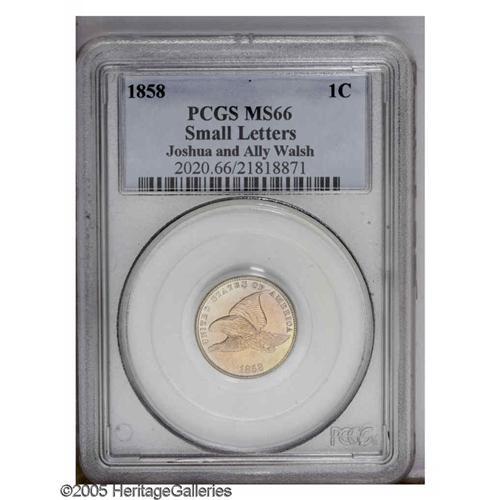 1858 1C Small Letters MS66 PCGS. Low Leaves Reverse, O 1858[1C] Small Letters MS66 PCGS.