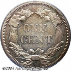 <table><tr><td><table><tr><td>1858 1C Small Letters PR64 PCGS. Snow-PR2. Luminous orange, gold, olive, and rose colors invigorate this meticulously struck near-Gem. A seemingly immaculate specimen aside from miniscule, well distributed carbon flecks. The reverse is the Low Leaves subtype, identified by the low position of the leaf pointing toward the right pendant of the T in CENT. A diagonal die line in the denticles below the right ribbon end identifies this proof die pairing. Rick Snow states that PR2 was "probably included in the 12 piece pattern sets" and in fact duplicates the listing as PT9 in the pattern portion of his 1856-1858 reference. However, some of the examples of PT9 from those sets were business strikes from different die marriages. The Small Letters Cent was produced only in 1858, and the few dozen proof survivors are distributed among four separate die varieties. <BR><BR><B>Important notice:</B> Heritage usually auctions material at the rate of 200-250 lots per hour. On some occasions eBay Live bid software or the Internet may not be able to keep up with the pace of the auction. We recommend placing a realistic absentee bid now as insurance to avoid disappointment. Occasionally the auctioneer may eliminate or reject an eBay Live bid, and the auctioneer may also reopen a lot after the close of the eBay live bidding (usually because we missed an audience bid), and may reject your bid even if it shows you as the winning bidder. By bidding via eBay Live, you agree that Heritage may award the lot to another bidder at its sole discretion under the circumstances described above or any other reasonable circumstances. Since eBay bids are not shown to us until we open the lot on the floor, we treat those bids just like floor bids. In most cases the floor responds before the eBay bid is presented to us, due to Internet lag time, so for consistency we have made it a policy that floor bids are always considered first over tie eBay live bids. Also please note that all Heritage lots purchased through eBay Live carry a 20% Buyer's Premium. Please make sure you read the Terms and Conditions before you bid. <BR><BR><B>IMPORTANT ANNOUNCEMENT ABOUT RESERVES:</B> Heritage now divulges all reserves on its web site 7 days before every auction. If you want to know whether the reserve on this lot has been met, and if not, what the reserve amount is, please visit this lot page on the HeritageCoin.com web site, or email: bid@HeritageGalleries.com </span></font></td></tr></table></td></tr></table>