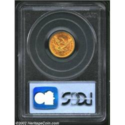 1858 $2 1/2 MS63 PCGS. A low mintage P-mint Quarter Eagle from the 1850s, the 1858 was produced to the extent of just 47,377 pieces, only 250 coins of which are believed extant. In Mint State, the 1858 is the rarest P-mint Quarter Eagle from this decade along with the 1850 and both hub varieties of the 1859. This is a simply beautiful coin whose eye appeal is superior for the designated grade. Lovely reddish-gold color overlays frosty textured surfaces, neither of which is excessively abraded or possessed of singularly mentionable blemishes. A sharp strike rounds out this coin's list of positive attributes. Population: 8 in 63, 7 finer (10/02). Important notice: We expect to be auctioning lots at the rate of 200-250 per hour. Sometimes eBay Premier live bid software cannot keep up with that pace, so we strongly recommend that you place a realistic proxy bid now as insurance to avoid disappointment. Also please note that all Heritage/CAA lots purchased through eBay Premier carry a 20% Buyer's Premium. Please make sure you read the Terms and Conditions.