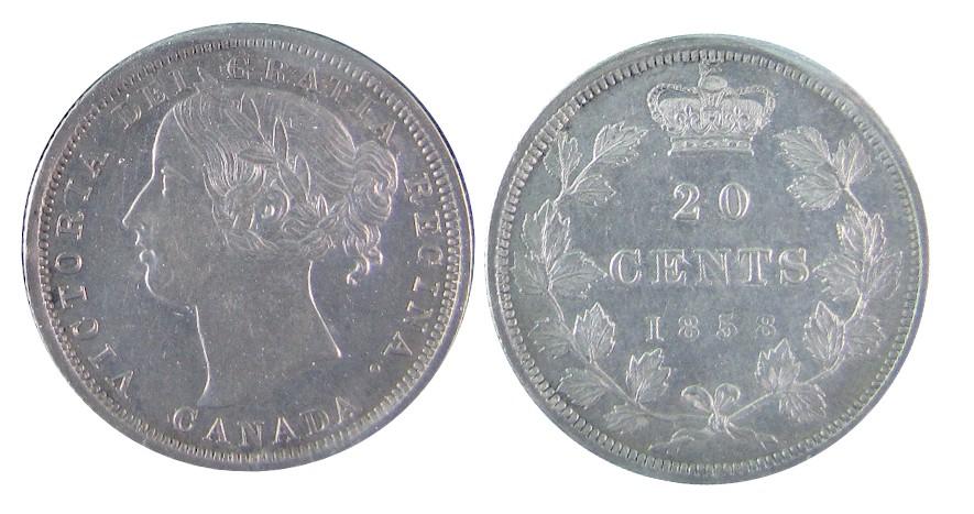 1858 20¢ ICCS AU58.