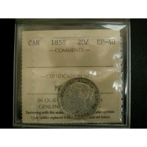 1858 20¢ ICCS EF40, White and lustrous