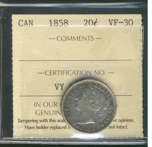1858 20¢ ICCS VF30.