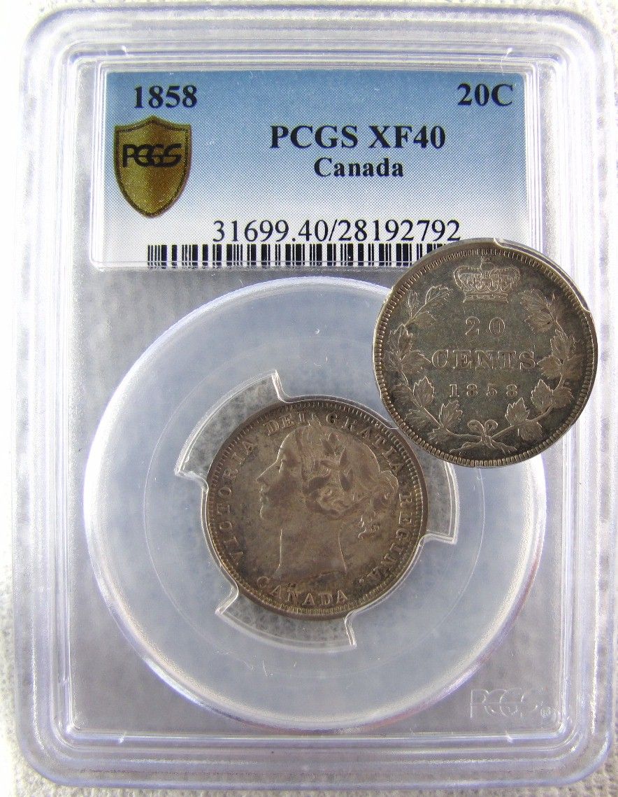 1858 20¢ PCGS EF40. Lightly toned.Popular type.