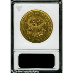 1858 $20 --Reverse Planchet Defect--AU50 ANACS. Gre <B>1858 $20 --Reverse Planchet Defect--AU50 ANACS.</B></I> Grease was struck into the planchet between the TW of TWENTY on the reverse. The surfaces reveal bright apricot-gold color, and sharply struck design elements. Light abrasions are scattered about each side. <BR><BR><B>Important notice:</B> Heritage usually auctions material at the rate of 200-250 lots per hour. On some occasions eBay Live bid software or the Internet may not be able to keep up with the pace of the auction. We recommend placing a realistic absentee bid now as insurance to avoid disappointment. Occasionally the auctioneer may eliminate or reject an eBay Live bid, and the auctioneer may also reopen a lot after the close of the eBay live bidding (usually because we missed an audience bid), and may reject your bid even if it shows you as the winning bidder. By bidding via eBay Live, you agree that Heritage may award the lot to another bidder at its sole discretion under the circumstances described above or any other reasonable circumstances. Since eBay bids are not shown to us until we open the lot on the floor, we treat those bids just like floor bids. In most cases the floor responds before the eBay bid is presented to us, due to Internet lag time, so for consistency we have made it a policy that floor bids are always considered first over tie eBay live bids. Also please note that all Heritage lots purchased through eBay Live carry a 20% Buyer's Premium. Please make sure you read the Terms and Conditions before you bid. This lot is being auctioned in conjunction with a live floor auction by Heritage Galleries & Auctioneers. All final auction and invoice information will be supplied by Heritage Galleries & Auctioneers, and all other information should be considered preliminary. Lot:6841