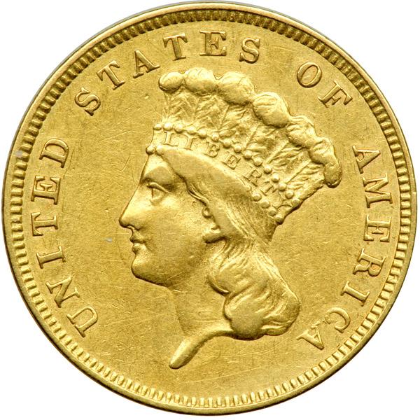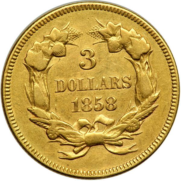 1858. Sharpness of EF-45. Cleaned and lightly toned. Low mintage date as only 2,133 were minted. The 1858 occupies a position of special warmth and memory in the hearts and minds of numismatists. Years ago, more so than now, the appearance of an 1858 in any grade was an occasion for a celebration of scarcity or rarity--deservedly so, as reflected by the circulation strike production. This figure is far and away the lowest of any Philadelphia Mint coin up to this time.