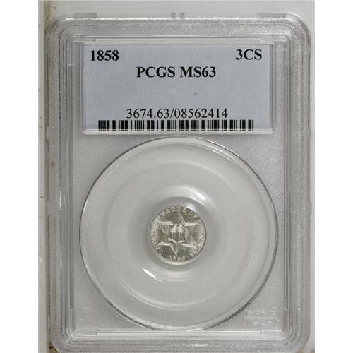 <B>1858<3CS> MS63 PCGS.</B></I> This Select example is softly lustrous with a typical strike. The surfaces are largely free of toning and have few marks for the grade.