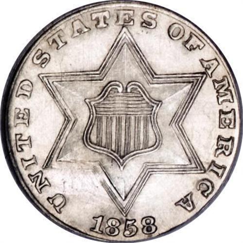 <B>1858 3CS MS65 NGC.</B></I> The final issue of the Type Two design; a brilliant Gem with frosty silver luster and untoned surfaces. Both sides are sharply detailed, including prominent clash marks in the fields. This lovely piece will grace even the finest cabinet. Census: 43 in 65, 31 finer (1/08).<BR><I>From The Southwest Collection.</B></I><BR><BR><B>Coin Engraver:</B> James B. Longacre<BR><BR><b>Shipping:</b> Coins & Currency (<a target="_blank" href="http://www.heritageauctions.com/common/shipping.php">view shipping information</a>)