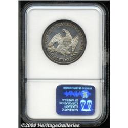 <table><tr><td><table><tr><td>1858 50C MS62 NGC. Lovely deep purple, dark-green, and charcoal-gray toning adorns the surfaces of this well struck example, which displays a few grade-limiting contact marks on each side, mostly in the field areas. <BR><BR><B>Important notice:</B> Heritage usually auctions material at the rate of 200-250 lots per hour. On some occasions eBay Live bid software or the Internet may not be able to keep up with the pace of the auction. We recommend placing a realistic absentee bid now as insurance to avoid disappointment. Occasionally the auctioneer may eliminate or reject an eBay Live bid, and the auctioneer may also reopen a lot after the close of the eBay live bidding (usually because we missed an audience bid), and may reject your bid even if it shows you as the winning bidder. By bidding via eBay Live, you agree that Heritage may award the lot to another bidder at its sole discretion under the circumstances described above or any other reasonable circumstances. Since eBay bids are not shown to us until we open the lot on the floor, we treat those bids just like floor bids. In most cases the floor responds before the eBay bid is presented to us, due to Internet lag time, so for consistency we have made it a policy that floor bids are always considered first over tie eBay live bids. Also please note that all Heritage lots purchased through eBay Live carry a 20% Buyer's Premium. Please make sure you read the Terms and Conditions before you bid. <BR><BR><B>IMPORTANT ANNOUNCEMENT ABOUT RESERVES:</B> Heritage now divulges all reserves on its web site 7 days before every auction. If you want to know whether the reserve on this lot has been met, and if not, what the reserve amount is, please visit this lot page on the HeritageCoin.com web site, or email: bid@HeritageGalleries.com </span></font></td></tr></table></td></tr></table>