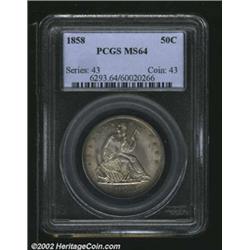 1858 50C MS64 PCGS. A steel-gray near-Gem with rich luster and a few very wispy field distractions..