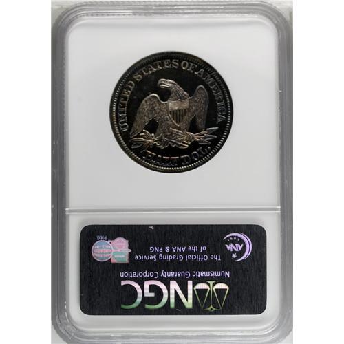 1858 50C PR65 NGC. Waves of golden-brown, ocean-blue,