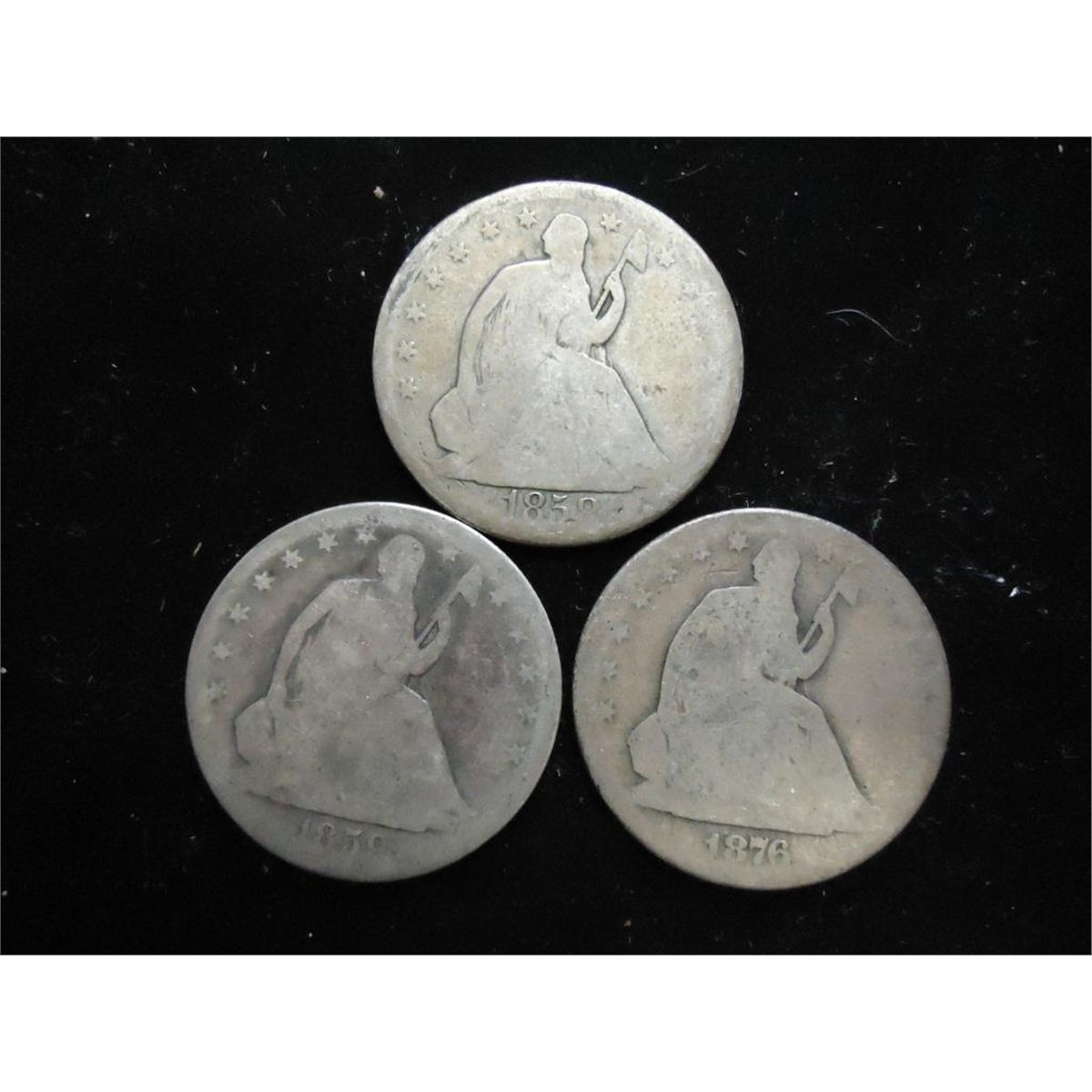 1858,59-0 & 76 SEATED LIBERTY HALF DOLLAR