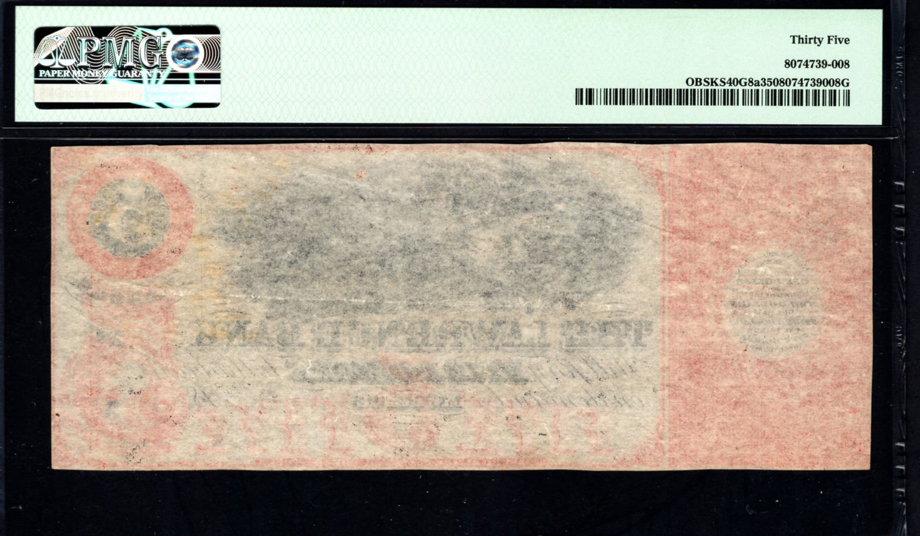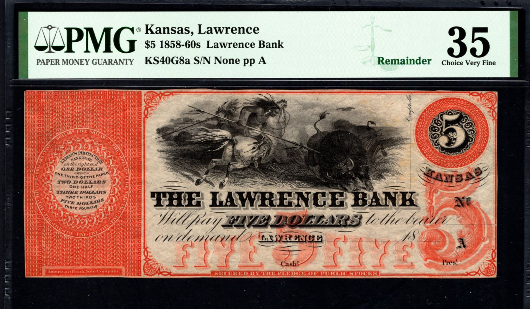 One 1858-60's $5 Lawrence Bank Note PMG 35.