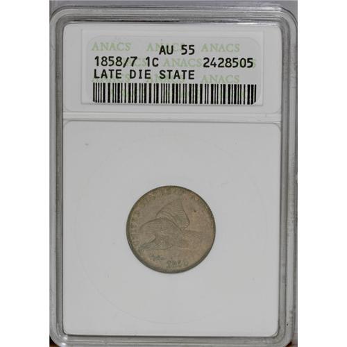 1858/7 1C AU55 ANACS. Noted as a late die state; only
