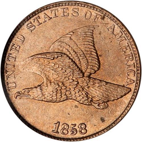 <b>1858/7 Flying Eagle Cent. NGC graded MS64 BR.</b> A very handsome, bright Uncirculated example of the scarce overdate from 1858. The luster is light reddish copper-nickel with a few tiny toned areas above and below the eagle's tail. Best of all is the condition of the devices. They are sharply defined including all the key high points of the design <b>(PCGS # 2022)</b>