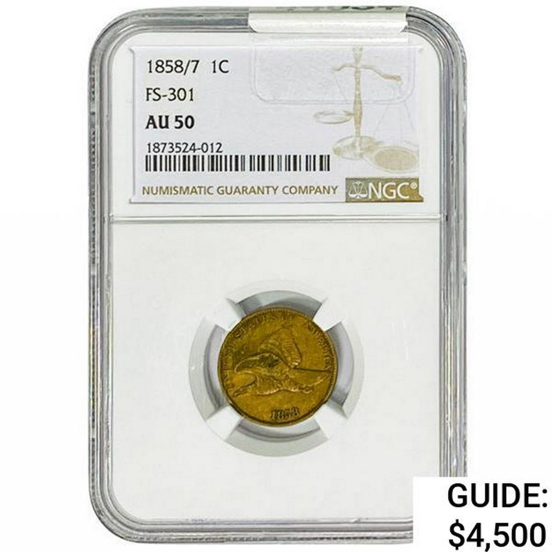 1858/ 7 Flying Eagle Cent NGC AU50 FS-301
