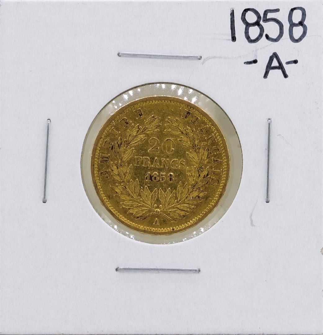 One 1858-A France 20 Francs Gold Coin.