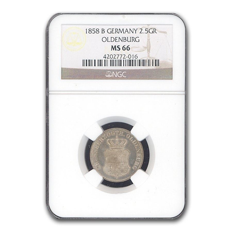 1858-B Germany 2 1/2 Groschen Oldenburg MS-66 NGC
