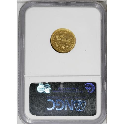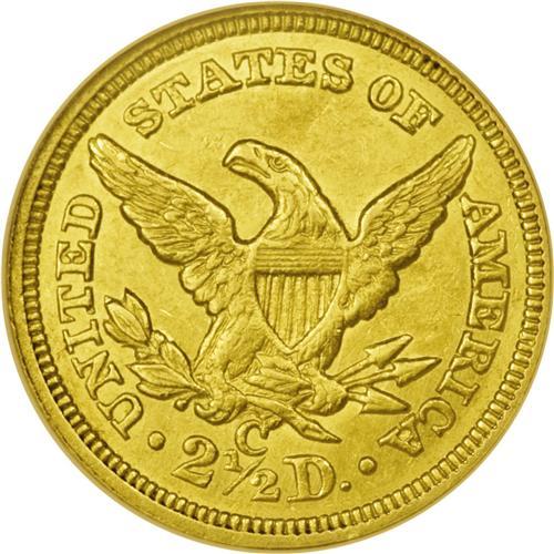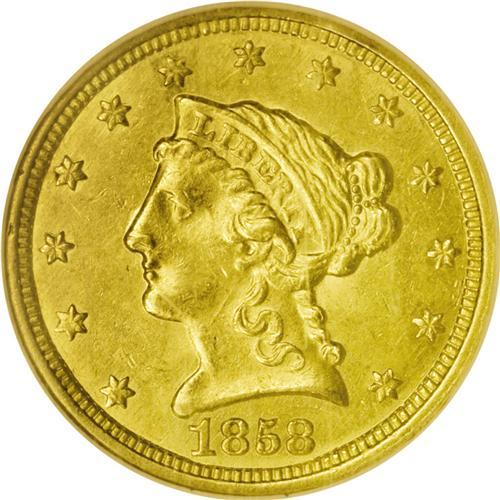 1858-C $2 1/2 MS61 NGC. Rich, frosted luster radiates