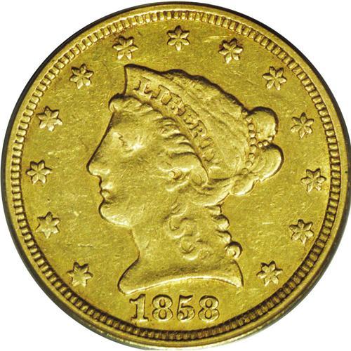 "1858-C $2 1/2 XF45 PCGS. Winter 18-J, t"