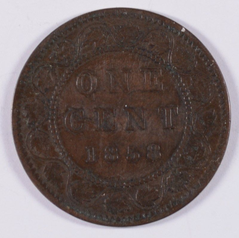 1858 CANADIAN LARGE CENT, VF/XF RARE KEY DATE