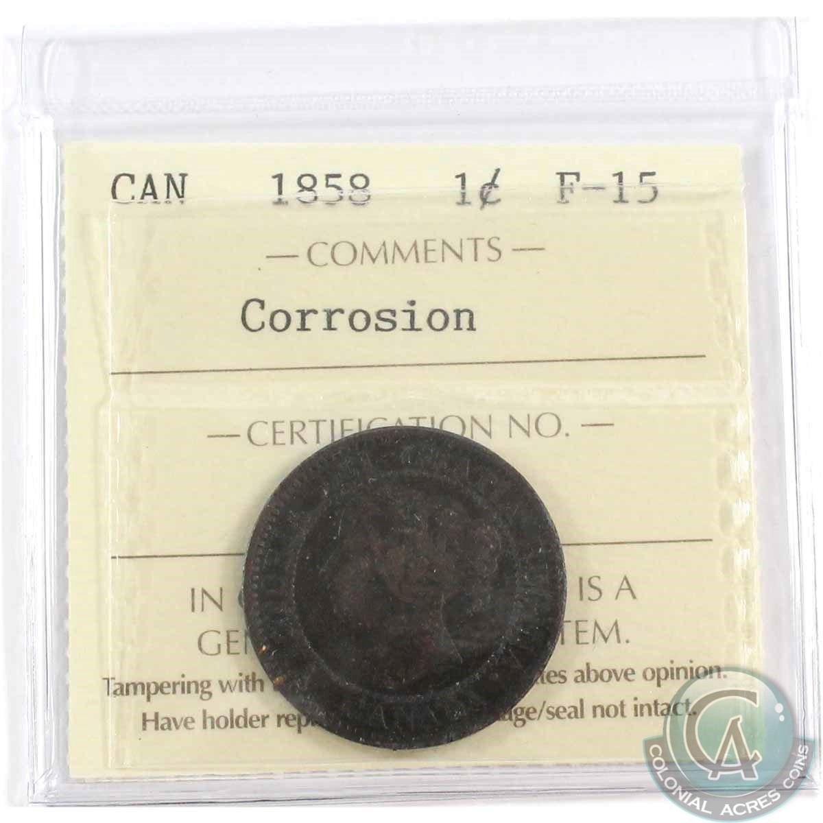 1858 Canada 1-cent ICCS Certified F-15 (Corrosion)