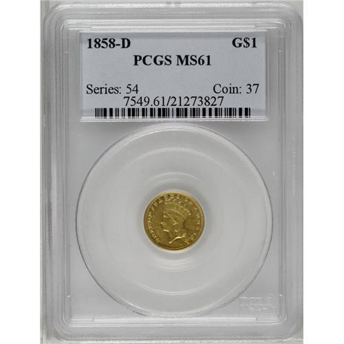 "1858-D G$1 MS61 PCGS. Variety 10-M, the"