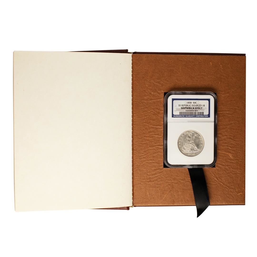 1858 Doubled 18 Seated Liberty Half Dollar Coin NGC Shipwreck Effect w/ Book